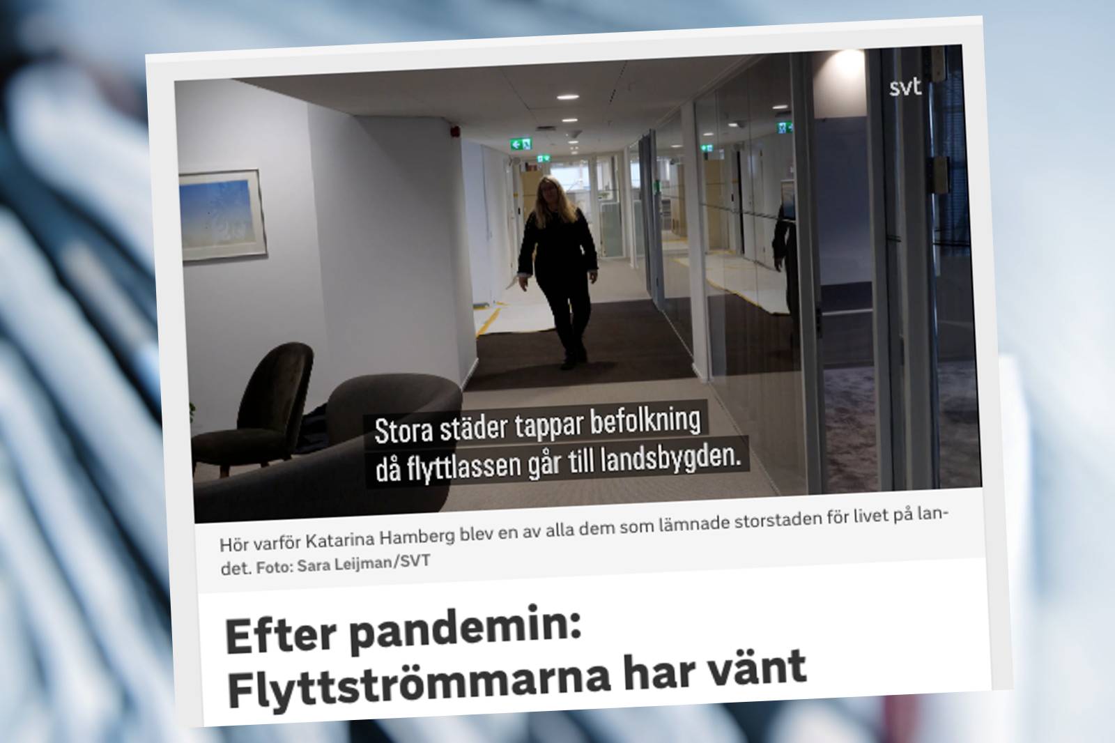 Vad? För första gången på 20 år är det fler som flyttar till Jämtland, Gävleborg och Värmland än som flyttar ifrån länen. Flera lokala SVT-redaktioner kläckte idén om att göra något på befolkningsutvecklingen och ändrade flyttströmmar efter pandemin. Initiativet till publiceringen kom från Jämtland och Gävleborg, men har spritt sig till flera. Här är det än en gång en kraftfull kombination av engagerade lokal journalistik med röster från lokalsamhället som kombineras med datajournalistik, ett vinnande recept.
