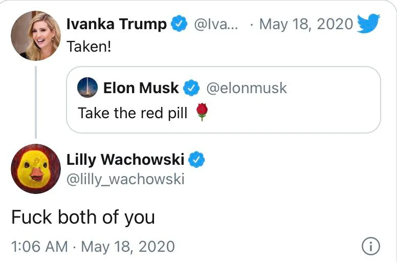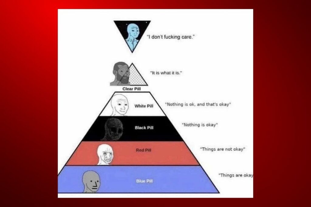 ”Taking the red pill” som beskrivande för ett politiskt uppvaknande har blivit ett av de mest centrala begreppen på det politiska internet, särskilt för den nya extremhögern och vad som brukar kallas manosfären. Det har gett upphov till otaliga avknoppningar som det fatalistiska “black pill”, dess optimistiska motsats “white pill”, och “iron pill” för insikten att man måste lyfta skrot för att förbereda sig för kommande raskrig.